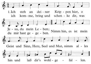 des Liedes „Ich steh an deiner Krippen hier“