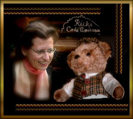 Murpel mit Brigitte Gensch in seinem LieblingsCafe. Möglicherweise hat er die Szene auch nur geträumt und das Bild wurde durch das TraHolOval generiert.