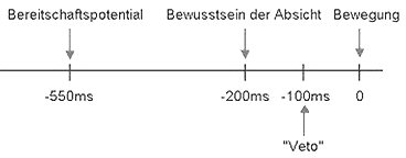 Wenngleich nicht das einzige Argument, so wurde doch Benjamin Libets experimenteller „Nachweis“ eines vorauslaufenden Bereitschaftspotenzials im Gehirn bei subjektiv erlebten Willkürbewegungen zur empirischen Verifikation der These angeführt. Sehen wir uns dies genauer an. Wir folgen dabei der verständlichen Darstellung Michael Pauens: In seinen ursprünglichen Experimenten untersuchte Libet die zeitliche Abfolge zwischen einer einfachen Handlung, dem dazugehörigen bewussten Willensakt und der Einleitung der Handlung auf der neuronalen Ebene. Die Versuchspersonen hatten die Aufgabe, mehrmals eine einfache Handbewegung der rechten Hand auszuführen. Den Zeitpunkt der Ausführung konnten sie jeweils innerhalb einer Zeitspanne von 1 – 3 Sek. frei wählen. „Gleichzeitig waren sie aufgefordert, sich genau zu merken, wann sie den bewussten 'Drang' oder Wunsch verspürten, die Bewegung auszuführen. Zu diesem Zweck sollten sie sich die Position eines Punktes merken, der sich ähnlich wie ein Sekundenzeiger mit einer Geschwindigkeit von ca. 2,5 Sekunden pro Umdrehung auf einer Art Zifferblatt bewegte. Libet maß gleichzeitig den Anstieg des symmetrischen Bereitschaftspotentials. Dieses Bereitschaftspotentials ist ein im Elektroenzephalogramm (EEG) messbares negatives elektrisches Potential, das bei der Vorbereitung willentlicher Bewegungen entsteht und etwa eine Sekunde vor der Ausführung der Bewegung einsetzt. Das Potential ist sehr schwach; es kann daher nur durch Mittelung über eine Vielzahl von Versuchsdurchgängen (meistens etwa 40) festgestellt werden. Die zugrunde liegende neuronale Aktivität tritt auf im supplementären motorischen Areal, im primären motorischen Areal sowie in den primären und sekundären sensorischen Arealen.“ (Pauen, M. 2005)